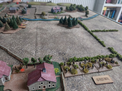 My introduction to O Group thanks to Dave saw my Soviets take on his German's in Scenario 1 from the O Group Eastern Front book. I'd painted up the extra bases I needed a while ago and used some of the improved 6/10mm scenery I'd been working on lately.