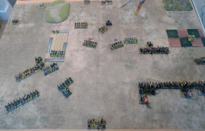 Another great game which, while it was not that close at the end, felt closer when the rebels stormed across the river! Dave's plan to attack in one place was interesting in that it immediately isolated half my force but it also resulted in his units getting in each other's way and blocked off his artillery support for much of the battle.