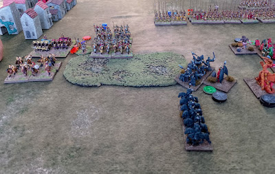 The terrain was quite restrictive and I deployed very badly with too many units on too short a frontage which was apparent on looking at the initial set up: